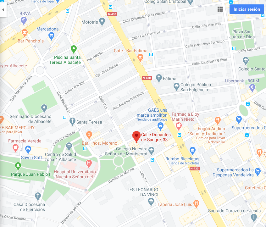 Estamos situados cerca del Hospital Perpetuo Socorro, cerca de la nacional 301 que bordea la ciudad y conecta con los poligonos industriales, palacio de congresos, así como las principales autovias y circuito de velocidad.